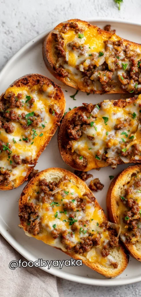 I have always stocked ground beef, cheese, and bread in my kitchen because I know I can quickly turn them into something delicious. I use freshly minced garlic, finely chopped onions, and a good pinch of paprika to make the beef mixture extra flavorful. Always remember to toast the bread lightly before adding the beef, because it keeps the toast crisp under all that juicy meat and cheese. That little extra step makes all the difference.