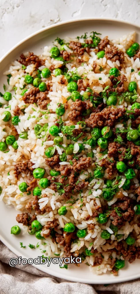 Last month I was very busy and didn’t feel like cooking anything fancy, but dinner still needed to be filling and homemade. Ground beef rice and peas quickly became my favorite choice because everything cooks together and the flavors blend beautifully. The beef gives richness, the rice absorbs all the seasoning, and the peas add a soft texture and gentle sweetness. It is simple food, but it tastes thoughtful and comforting.