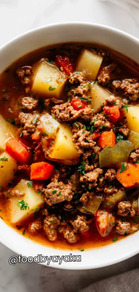 minutesHearty Ground Beef Stew with Potatoes is a cozy, easy one-pot meal packed with flavor. Perfect for family dinners, weeknights, and meal prep.
