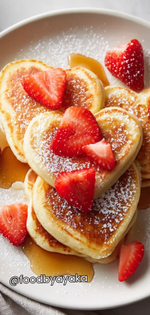 You can serve these pancakes for breakfast or brunch with a drizzle of maple syrup, some whipped cream, or even a dusting of powdered sugar for a delicate finish. Some like to add chocolate chips for a sweeter version, and you can also pair them with yogurt or a fruit smoothie for a complete morning meal. For an extra touch, serve them with a side of heart-shaped bacon or fresh berries arranged around the plate. They are as beautiful to look at as they are to eat.