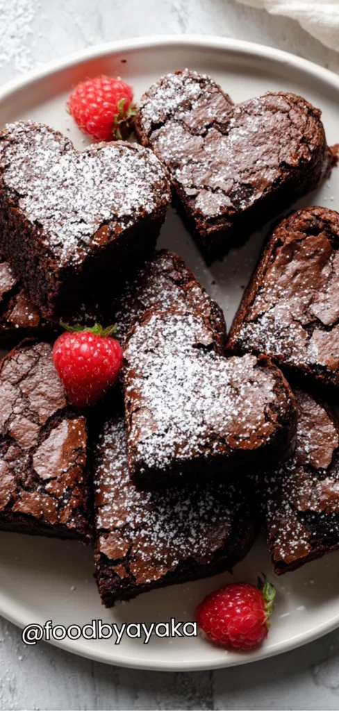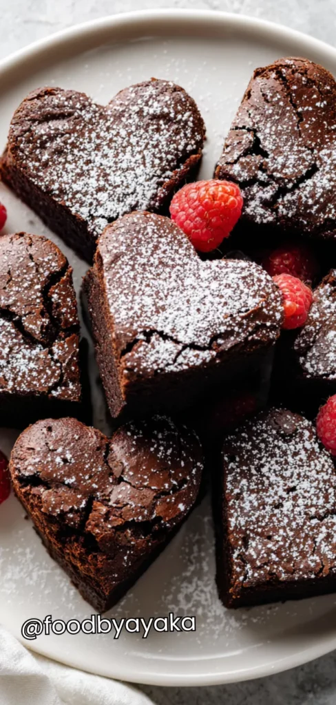 You can serve these heart-shaped brownies on their own, dusted with powdered sugar for a classic touch. Some whipped cream or fresh berries pair beautifully with the rich chocolate. Also, with a scoop of ice cream or a drizzle of caramel sauce, these brownies turn into a dessert that feels gourmet even when made at home.