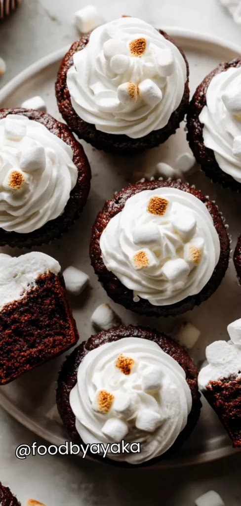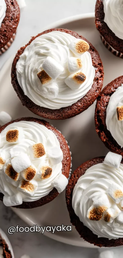 I have always enjoyed experimenting with cupcake flavors, and I use simple ingredients that you can find in any pantry. Cocoa powder, sugar, and eggs come together beautifully to create a moist base, while the marshmallow fluff frosting adds sweetness without overpowering the chocolate. Always preheat the oven and make sure your cupcakes are completely cool before frosting them, because nothing ruins fluffy marshmallow frosting like a warm cupcake melting it into a sticky puddle. These small steps make all the difference in texture and presentation.
