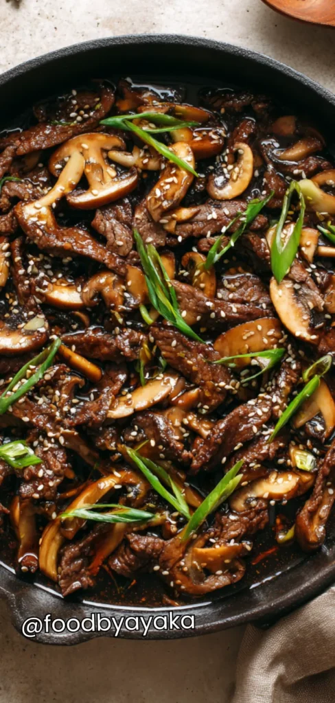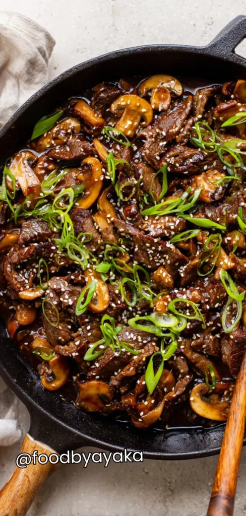 I have always loved recipes that don’t require dozens of ingredients or complicated steps. I use everyday pantry staples like soy sauce, sesame oil, and garlic, and they transform this dish into something that tastes like it belongs in a restaurant. Always remember to slice your mushrooms evenly and brown your beef properly—these little details make a big difference in flavor and texture.