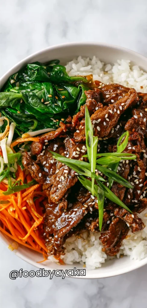 My husband wasn’t a huge fan of sweet-savory meat dishes at first, but this bulgogi recipe changed his mind. The balance of flavors is irresistible—the beef turns out tender, glossy, and bursting with umami. The aroma of garlic and sesame fills our kitchen and feels like something from a cozy Korean restaurant. If you’re looking for a comforting and flavorful meal that comes together easily, this Korean Beef Bulgogi Rice Bowl might just become one of your favorites. It combines thinly sliced beef marinated in a sweet-savory sauce made of soy sauce, garlic, sesame oil, and a hint of sugar—then cooked to perfection and served over warm rice. The result is juicy, caramelized beef that’s slightly smoky and packed with flavor.
