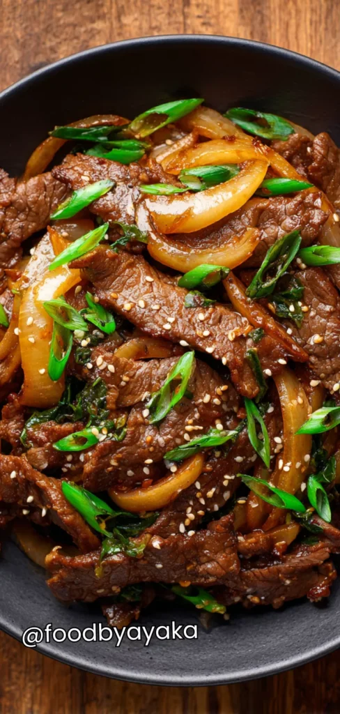 My mother used to make this dish when I was little, but she always added her own twist with extra sugar in the sauce. In my kitchen, it’s more balanced in sweetness and saltiness, and I always aim for that perfect harmony between the tender beef and the slightly caramelized onions. The flavor is comforting, yet bright with the sesame oil and a hint of chili. There’s something about Korean beef stir-fry with onions that feels both cozy and exciting at the same time. The sweet and savory sauce clings to tender beef, and the onions add a gentle crunch with every bite.