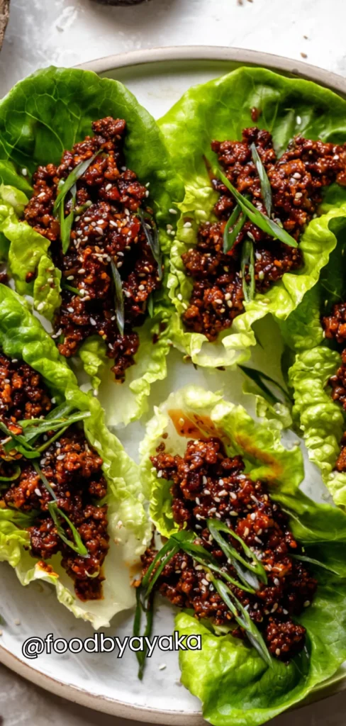 Serve immediately: Arrange the wraps on a platter and enjoy while warm. Encourage guests to fold the lettuce like a taco, taking a bit of beef, garnish, and sauce in every bite. These wraps are light, flavorful, and perfect for a quick weeknight dinner or a fun, interactive meal.