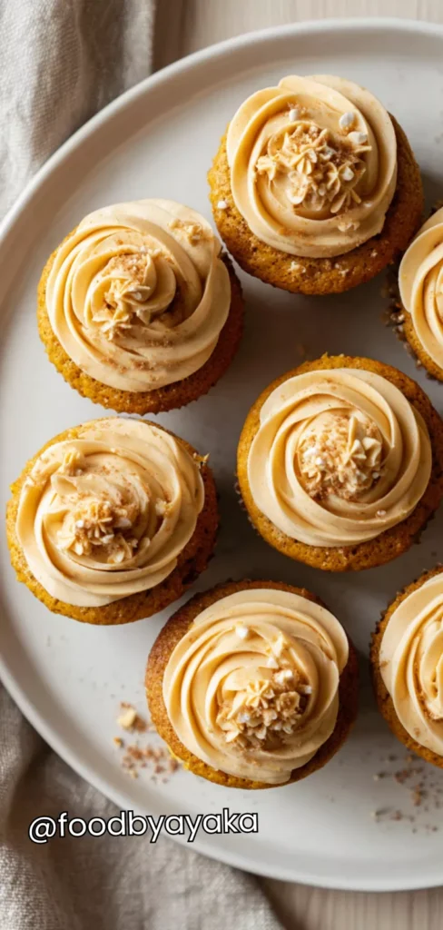 I like to serve these cupcakes plain when I want something light and simple, because the natural pumpkin flavor and warm spices are strong enough to make each bite enjoyable without any added sweetness. I find that enjoying them with a cup of hot coffee or herbal tea creates a cozy and comforting moment, perfect for a calm morning or relaxed afternoon.