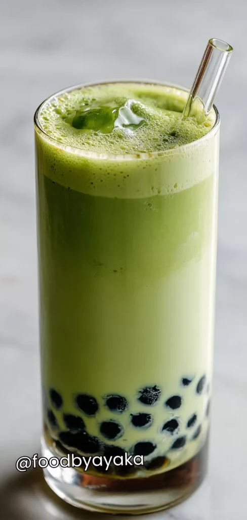 I also love pairing this drink with small desserts like mochi, sesame cookies, or even buttered toast. It’s refreshing yet comforting — perfect for warm afternoons, brunches, or even as a post-dinner drink. The combination of cold milk, soft pearls, and matcha foam feels like a treat and a ritual all in one.