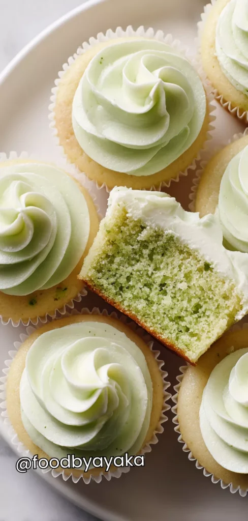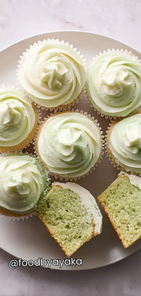 - Frost the cupcakes: Once the cupcakes are completely cooled, use a piping bag or a simple spatula to frost each cupcake generously. Make swirls, peaks, or smooth tops—anything that shows off the pretty green pandan shade. If desired, decorate with toasted coconut flakes or small pandan leaves for an elegant finish.