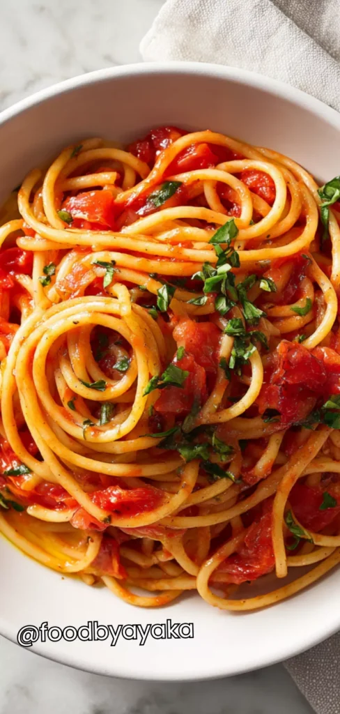 Yes, you can prepare the tomato sauce in advance and store it in the refrigerator for up to 3 days. The flavor actually deepens as it sits, which makes it even more delicious. When ready to serve, simply cook fresh pasta and toss it with the reheated sauce for the best texture and freshness.