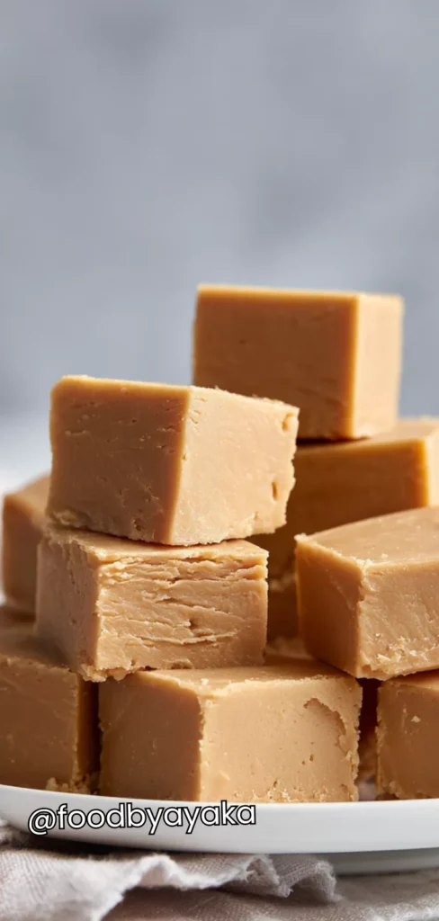 I usually serve Peanut Butter Fudge at room temperature so it’s soft, creamy, and melts perfectly in your mouth. I cut it into small squares or rectangles so everyone can enjoy a piece without feeling overwhelmed by sweetness. Arranging it on a pretty dessert plate or a wooden board makes it look inviting and homemade.
