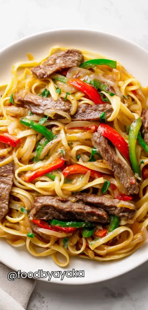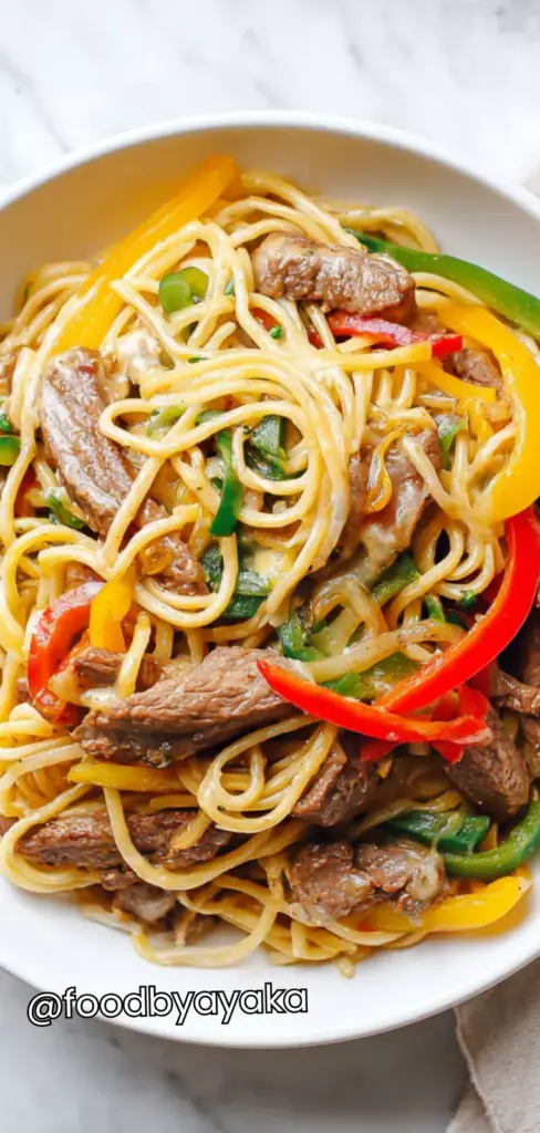 I have tried many pasta recipes over the years, but this one quickly became a favorite. I use thinly sliced beef for tenderness, a mix of bell peppers for color and flavor, and always make sure the sauce is creamy and cheesy so every bite feels indulgent but balanced. Cooking it in one skillet makes cleanup easy, which I love for busy evenings.