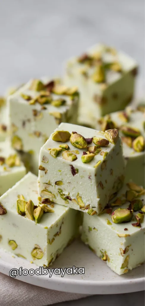 - Salted Caramel Pistachio Fudge: Swirl in caramel sauce before refrigerating. Sprinkle sea salt on top. Adds a sweet-salty indulgent twist.