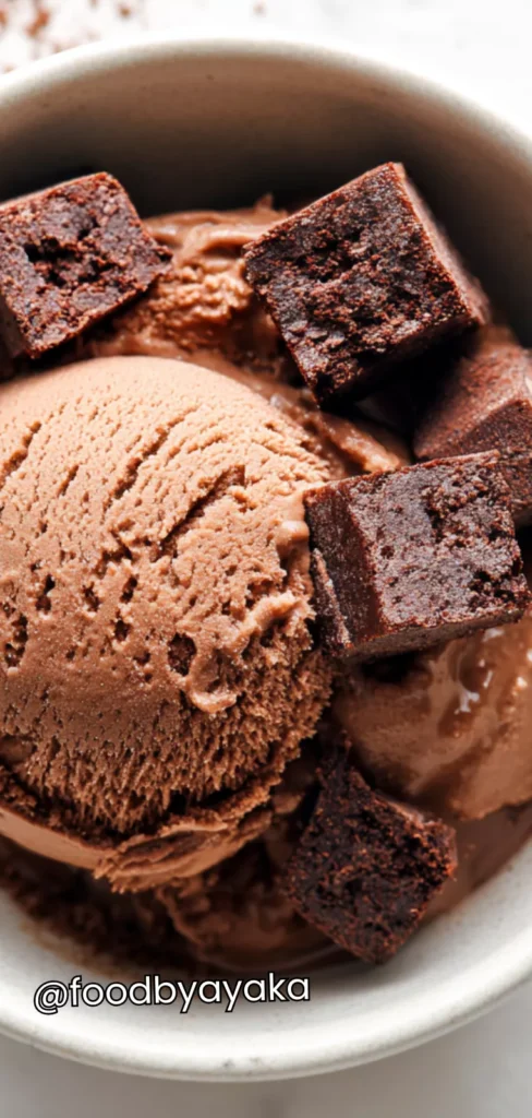 I have tried countless ice cream recipes in the past, but I use protein powder in this one to give it an extra boost. I always fold in brownie pieces for texture, and I make sure the base is well mixed so the flavor is even in every bite. Always taste the mixture before freezing, because adjusting sweetness is key for a perfect dessert.