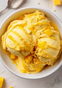 When you want to serve, take the ice cream out 5–10 minutes before scooping. You don’t need to reheat, just let it soften slightly. Stir gently if it’s too firm or icy to get the perfect creamy texture. Avoid microwaving, as it can melt unevenly and ruin the texture.