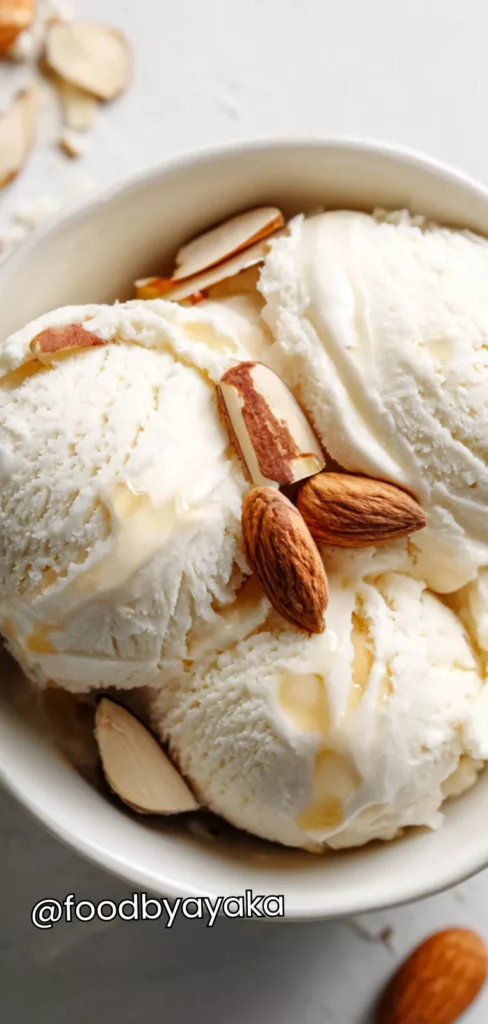 - Serve: Scoop the ice cream into bowls or cones. Sprinkle the reserved toasted almonds on top for crunch and garnish. This ice cream pairs well with fresh berries, a drizzle of almond butter, or a sprinkle of cinnamon for extra flavor.