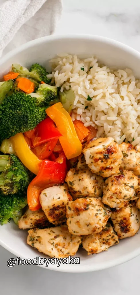 This recipe combines juicy ranch-seasoned chicken with rice and fresh vegetables for a balanced and satisfying meal. It’s the kind of dish that feels homemade but is still practical for meal prepping. I especially love that the ranch seasoning adds a creamy, herby flavor without needing heavy sauces.