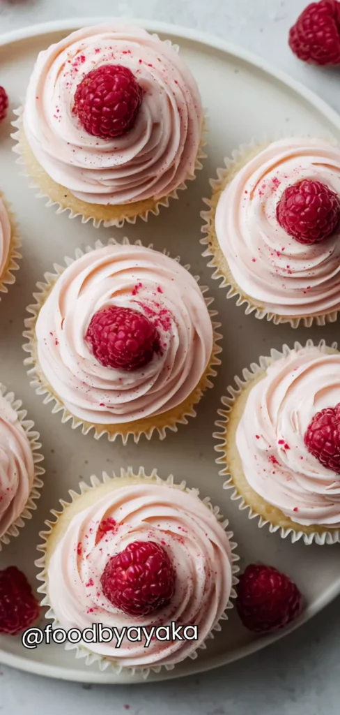 I love serving Raspberry Cupcakes on a beautiful platter because presentation makes dessert feel special. Placing them in colorful cupcake liners adds a festive touch, and arranging them in a circle or a small pyramid makes them the centerpiece of any dessert table. For parties or gatherings, I often add a few fresh raspberries around the platter to create a visually appealing display that makes guests excited to dig in.