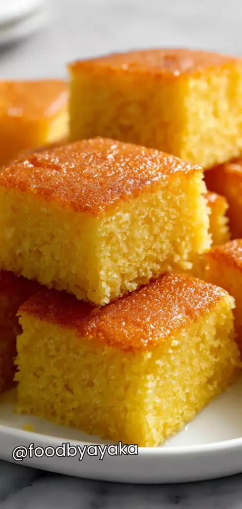 Add the syrup: Once the cake is baked, remove it from the oven and let it rest for about 5 minutes. Slowly pour the cooled syrup evenly over the warm cake, allowing it to absorb gradually. Make sure to distribute the syrup evenly across the surface so every bite is moist and flavorful. Allow the cake to sit at room temperature for 1–2 hours so it can fully absorb the syrup and develop its signature texture.