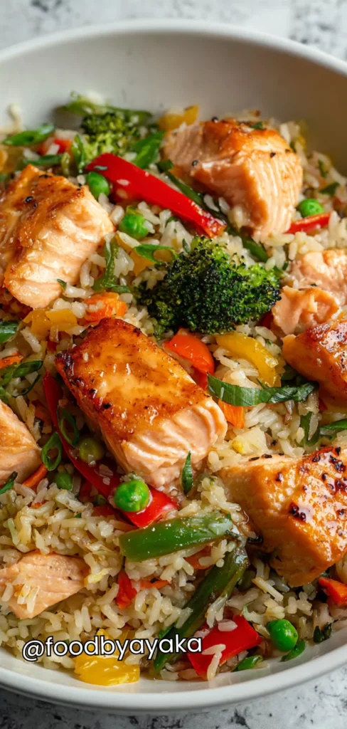 minutesTry this easy Salmon and Veggie Rice Stir-Fry recipe! Flaky salmon, colorful vegetables, and savory rice come together in a quick, healthy, and flavorful one-pan meal perfect for weeknight dinners or meal prep.