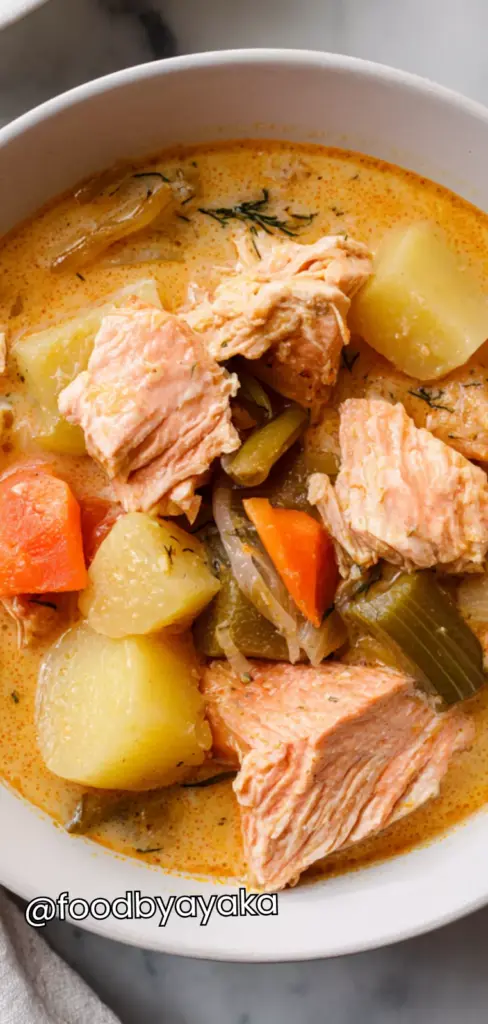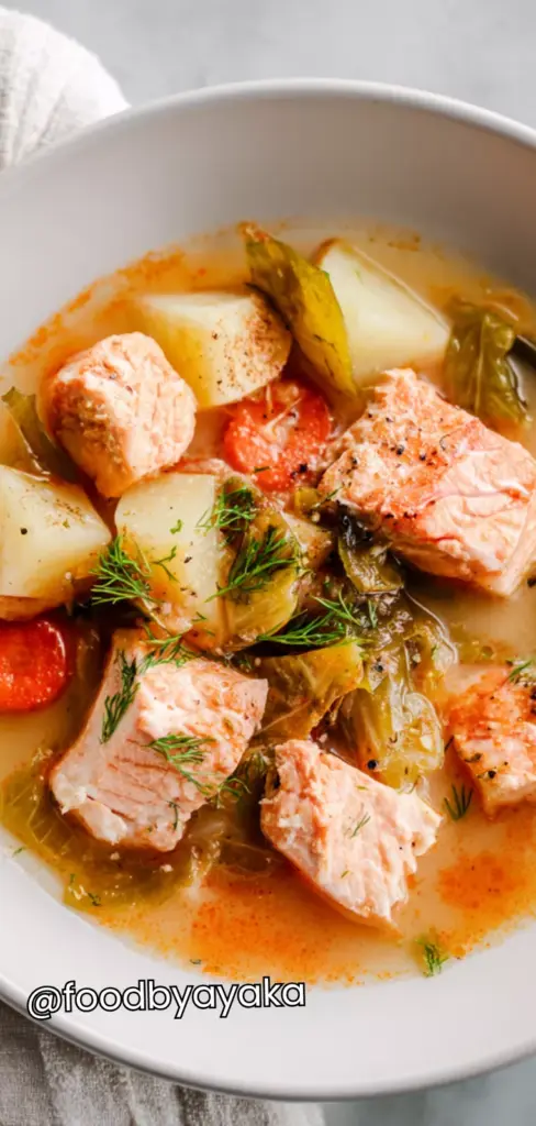minutesA comforting and easy salmon stew recipe made with fresh salmon, vegetables, and a light flavorful broth. Healthy, cozy, and perfect for family dinners or simple weeknight meals.