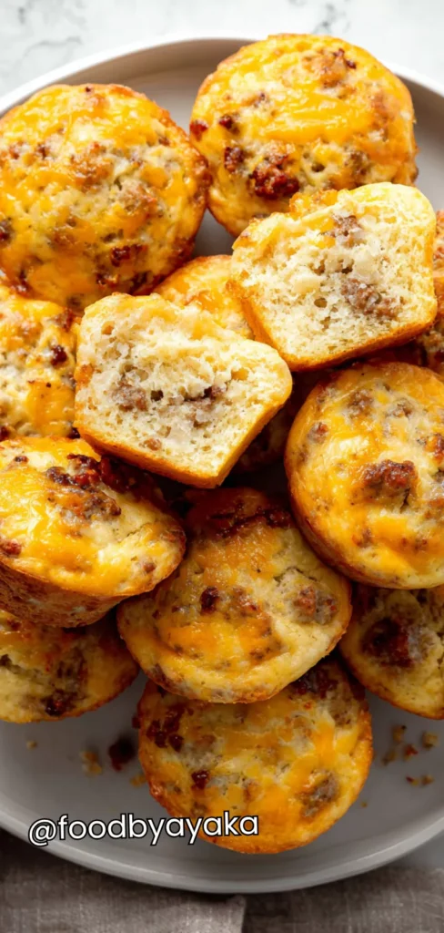 I have made this recipe countless times, and I use freshly grated sharp cheddar because it melts perfectly and gives the muffins that rich, cheesy taste. Always avoid pre-shredded cheese since it’s coated with anti-caking agents that can change the texture. I also like to use spicy sausage for an extra punch of flavor — it balances the buttery taste beautifully.