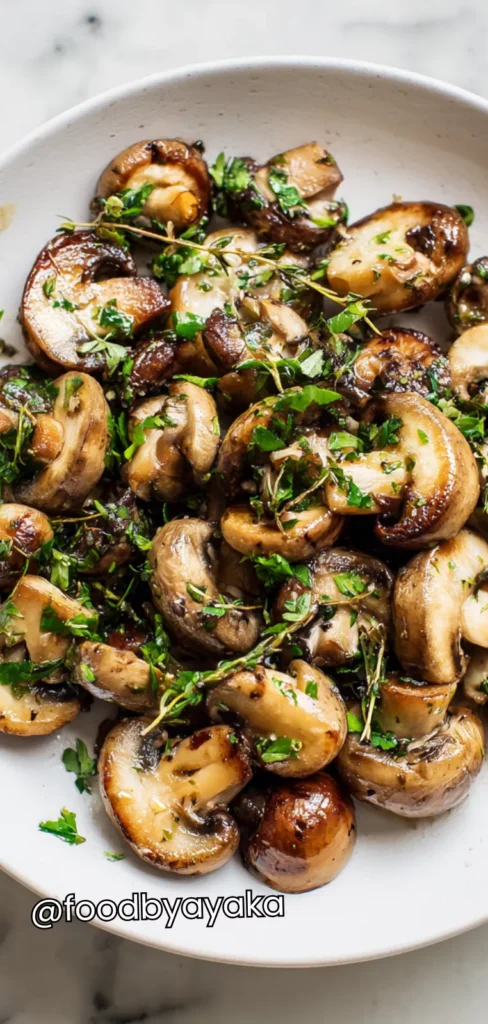 I like to serve Sautéed Mushrooms with Herbs straight from the skillet while they are still warm, so the aroma fills the room. I usually place them on a shallow serving dish so the herbs and garlic remain visible, making the dish look as good as it tastes. They pair wonderfully with roasted or grilled meats, like chicken, steak, or fish, because they soak up the natural juices and add extra flavor to every bite.