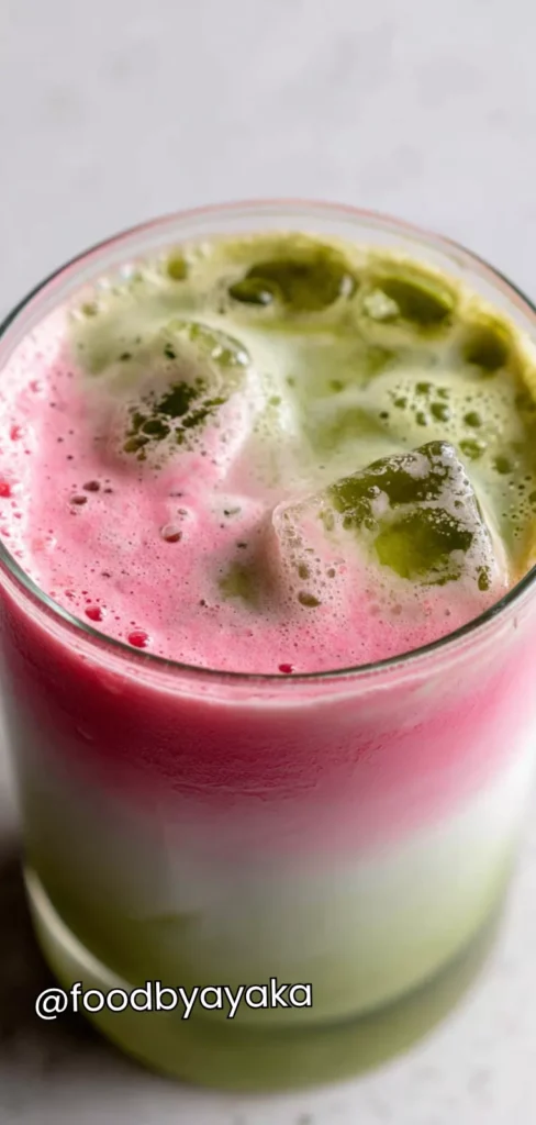 - Chill everything before layering. Cold milk, cold syrup, and ice help maintain the defined pink-green-white layers and make your drink last longer without melting too fast.