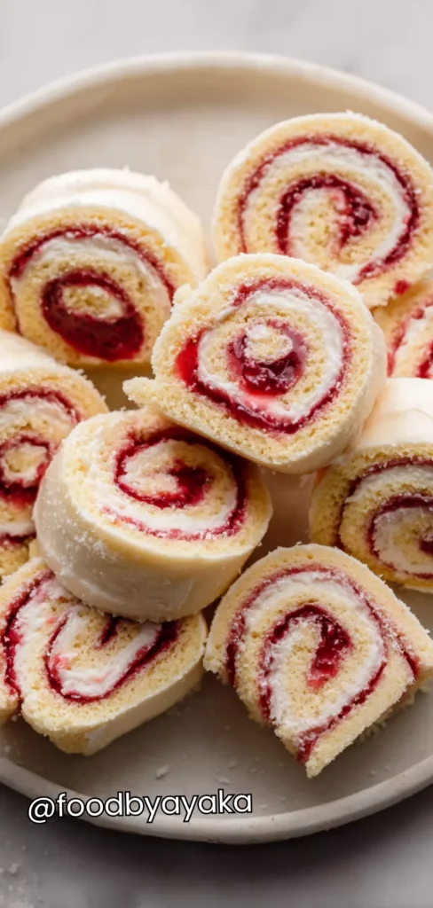 I like to serve these rolls chilled straight from the fridge. The slices hold their shape beautifully, and the cream filling stays smooth and creamy without melting. I often place a few extra strawberries on top for a fresh, colorful touch, which makes the dessert look even more inviting. Adding a light dusting of powdered sugar gives it a professional, bakery-style finish.