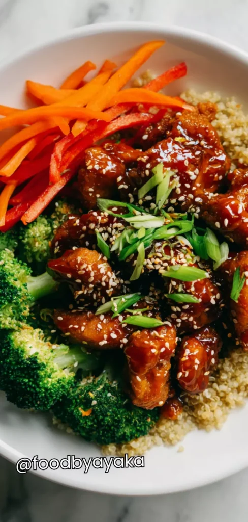 I like meals that are colorful and full of texture, but what I love most about this Sweet Chili Chicken Quinoa Bowl is that it’s both hearty and light. In many bowls I’ve tried before, the sauce can be too heavy or the vegetables too soggy, and this one gets it just right—crispy veggies, tender chicken, and the perfect coating of sweet chili sauce. It’s fresh, flavorful, and satisfying without being overwhelming. Each bite offers a combination of textures and flavors that make it feel both comforting and exciting. Plus, it’s simple enough to make any night of the week, whether it’s for lunch prep or a quick dinner.