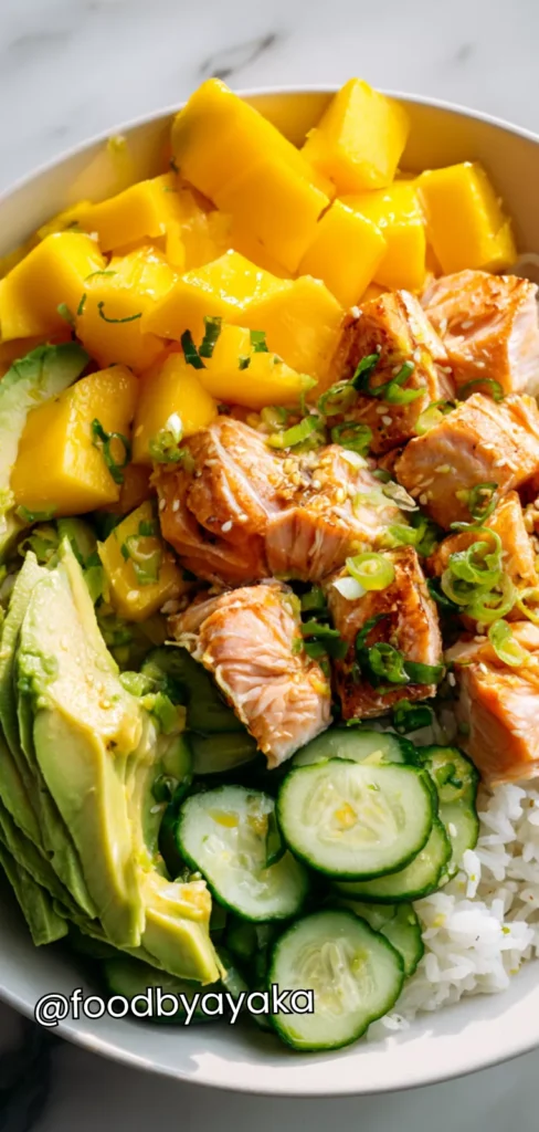 minutesMake this Sweet Mango Salmon Rice Bowl at home! A colorful, healthy, and flavorful meal with tender salmon, sweet mango, and fluffy jasmine rice. Perfect for lunch, dinner, or meal prep.