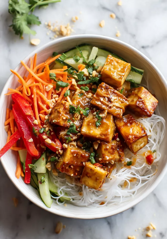 Spicy Peanut Tofu Bowl with Rice Noodles Recipe