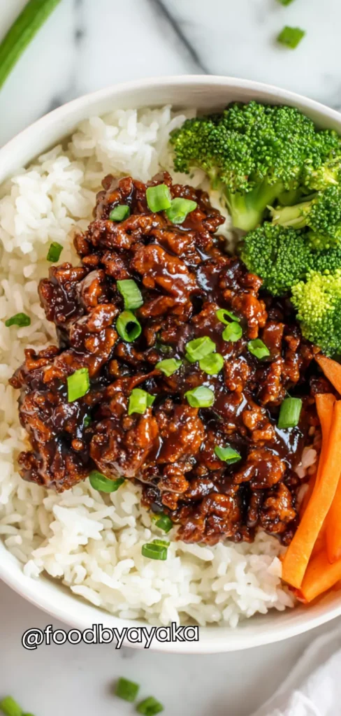 Assemble the bowls: Scoop warm cooked rice into bowls. Add a generous portion of the teriyaki ground beef mixture on top. Drizzle any extra sauce from the skillet over the bowl for added flavor. Garnish with sesame seeds and sliced green onions if you like a finishing touch.