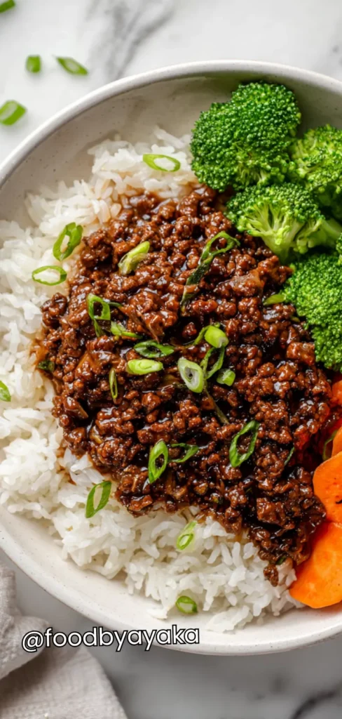 I also enjoy finishing the bowl with something rich to make it feel a little indulgent. A fried egg with a runny yolk melts into the beef and sauce, turning the whole dish extra creamy and satisfying. If I’m craving more depth, I add a drizzle of spicy mayo or a tiny splash of lemon juice to brighten the flavors. The beauty of this bowl is how flexible it is — you can keep it simple for busy days or dress it up when you want something special.