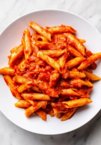 I often serve this pasta with something light on the side, such as garlic bread, toasted focaccia, or a simple green salad. The bread helps soak up the tomato sauce, while the salad adds a fresh and crisp contrast that balances the meal nicely.