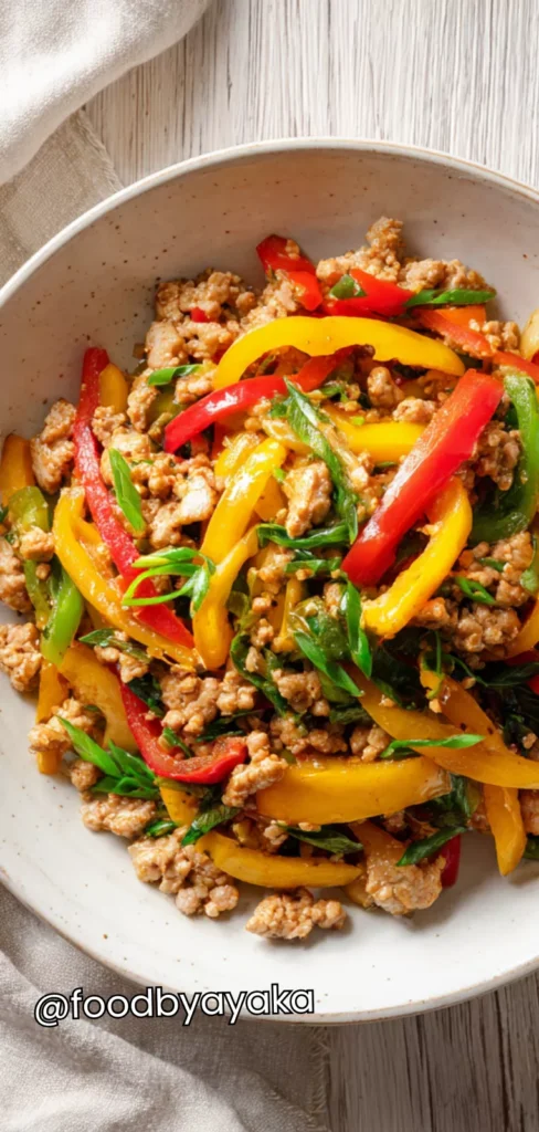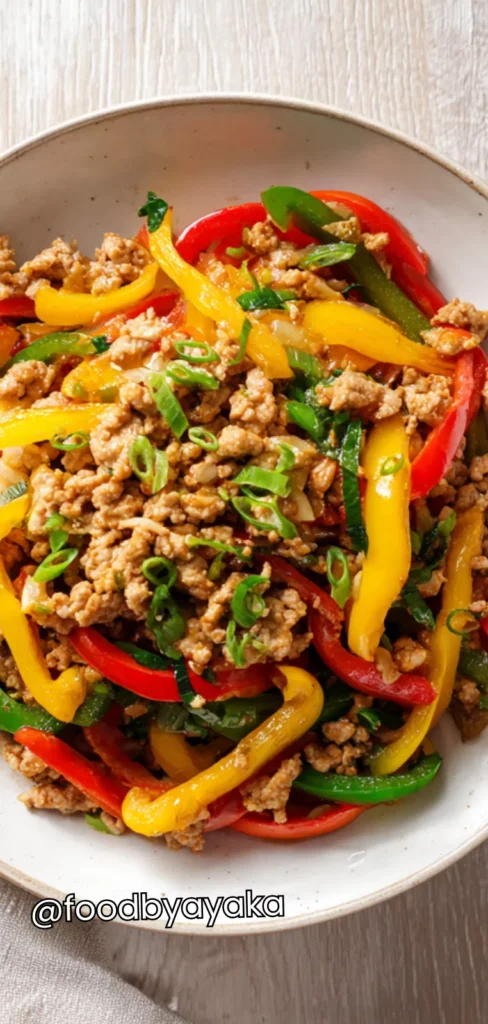 I have tried this recipe with both ground turkey and thinly sliced turkey breast. I use fresh, crisp bell peppers of different colors for the visual appeal and crunch. Always make sure not to overcook the vegetables—they should remain slightly crisp to contrast the tender turkey. I also like to keep the sauce on the thicker side so it coats every piece of meat and veggie evenly. It’s a dish that feels homemade, comforting, and yet light enough to enjoy without feeling heavy.