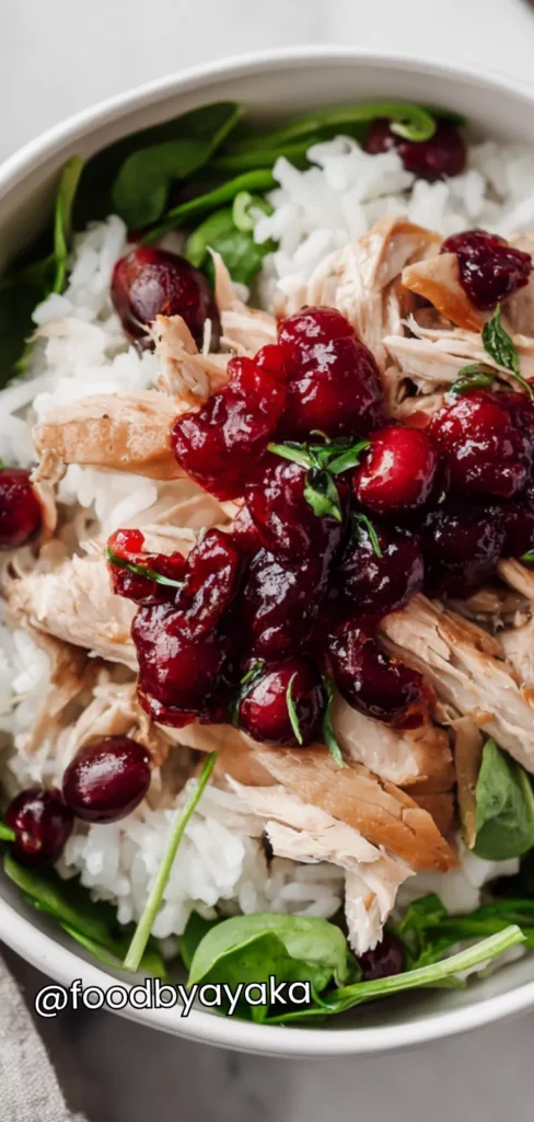 I have tried many rice bowl recipes before, but this one is my favorite because it’s simple and versatile. I use leftover turkey whenever I can, fresh vegetables for texture, and always make sure the cranberry sauce is just the right sweetness. I also like to season the rice lightly, so every layer of the bowl has a little flavor without being overwhelming.