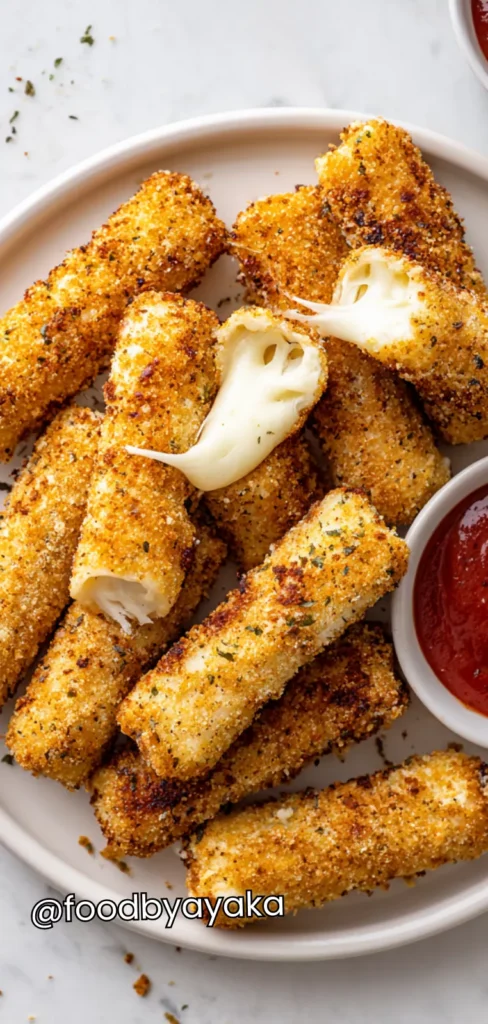 - Cauliflower Sticks: Replace mozzarella with cauliflower florets coated in the same breadcrumbs. Bake or air fry for a veggie version.